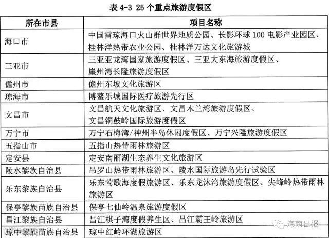 ✔加快推动建设海口、三亚、儋州3个精品旅游城市;突出打造6大旅游产业园。