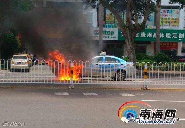 6月4日上午12时左右,位于海口海府路与蓝天路交汇处路口发生一起出租车自燃事件,现场无人员伤亡。