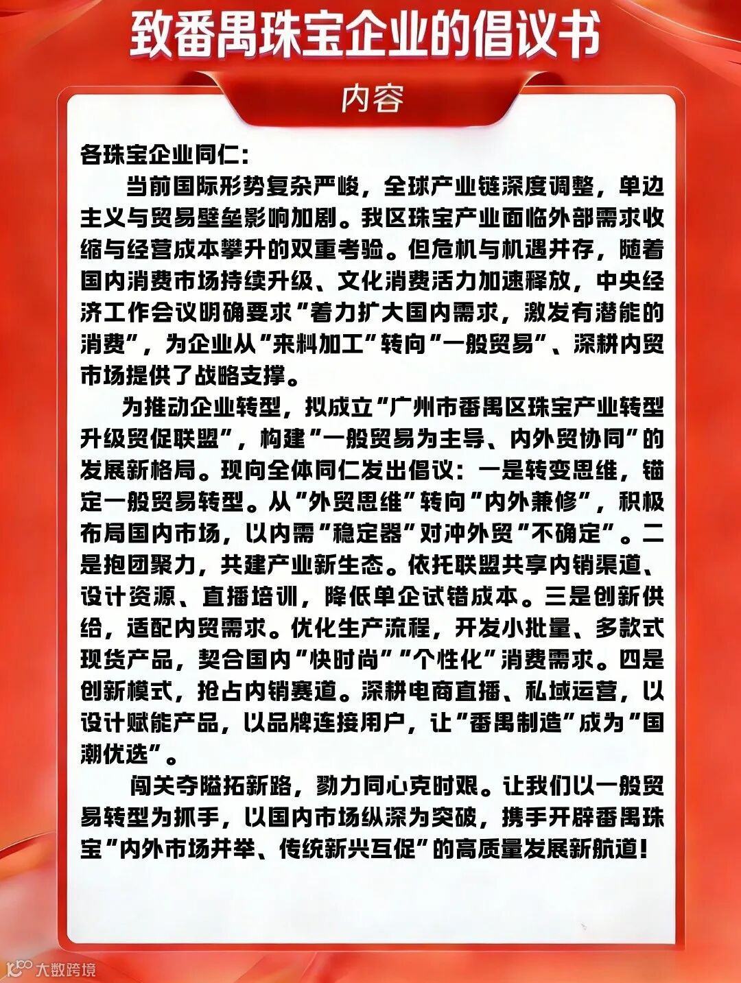 致番禺珠宝企业的倡议书