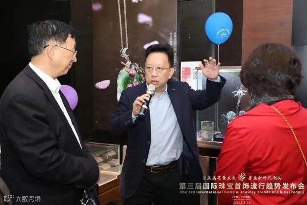 3月9日晚,发布会闭幕式圆满落幕。中宝协监事长、珠宝国检集团总经理梁振杰,广州市番禺区人大常委会主任、时尚产业链区级链长徐永,以及本届发布会海外顾问、华人珠宝设计师紫晨分别致辞。