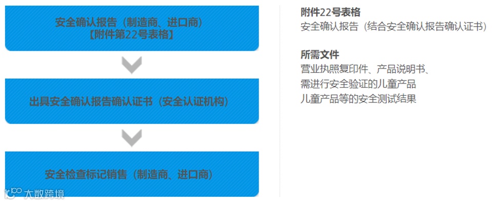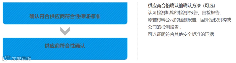 (3)儿童产品安全确认和供应商符合性确认标志。制造商或进口商经过指定检测检验机构安全检测检验,确认符合儿童产品安全标准后,方可加贴安全确认标志。