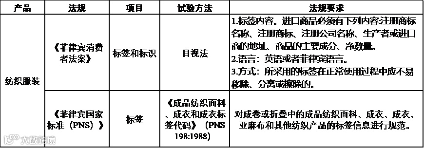 纺织服装不属于菲律宾PS和ICC强制认证产品范围,无须在通关前获得相关认证并贴附标志。