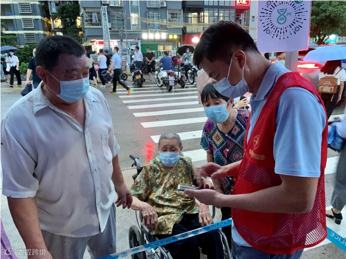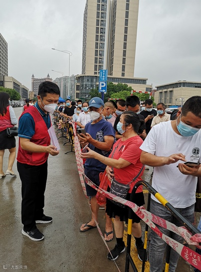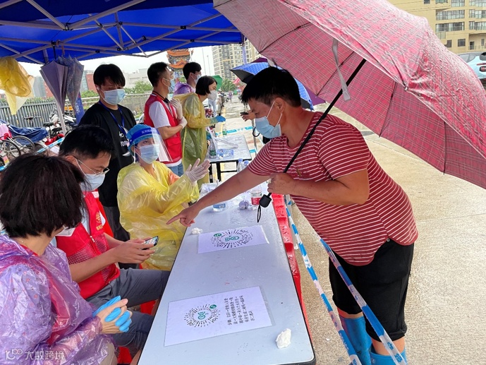工作,积极协助维持现场秩序、指引群众登记信息等工作。下午,党群先锋队员在倾盆大雨中坚守岗位,热心服务冒雨前来的群众完成检测。晚上7点以后,受检群众人流迎来高峰,党群先锋队员们密切配合,快速有序指导群众完成信息预登录,帮助没有手机、微信的年长者填写信息。经过13个小时的奋战,圆满完成支援植村近20000名群众的检测工作。