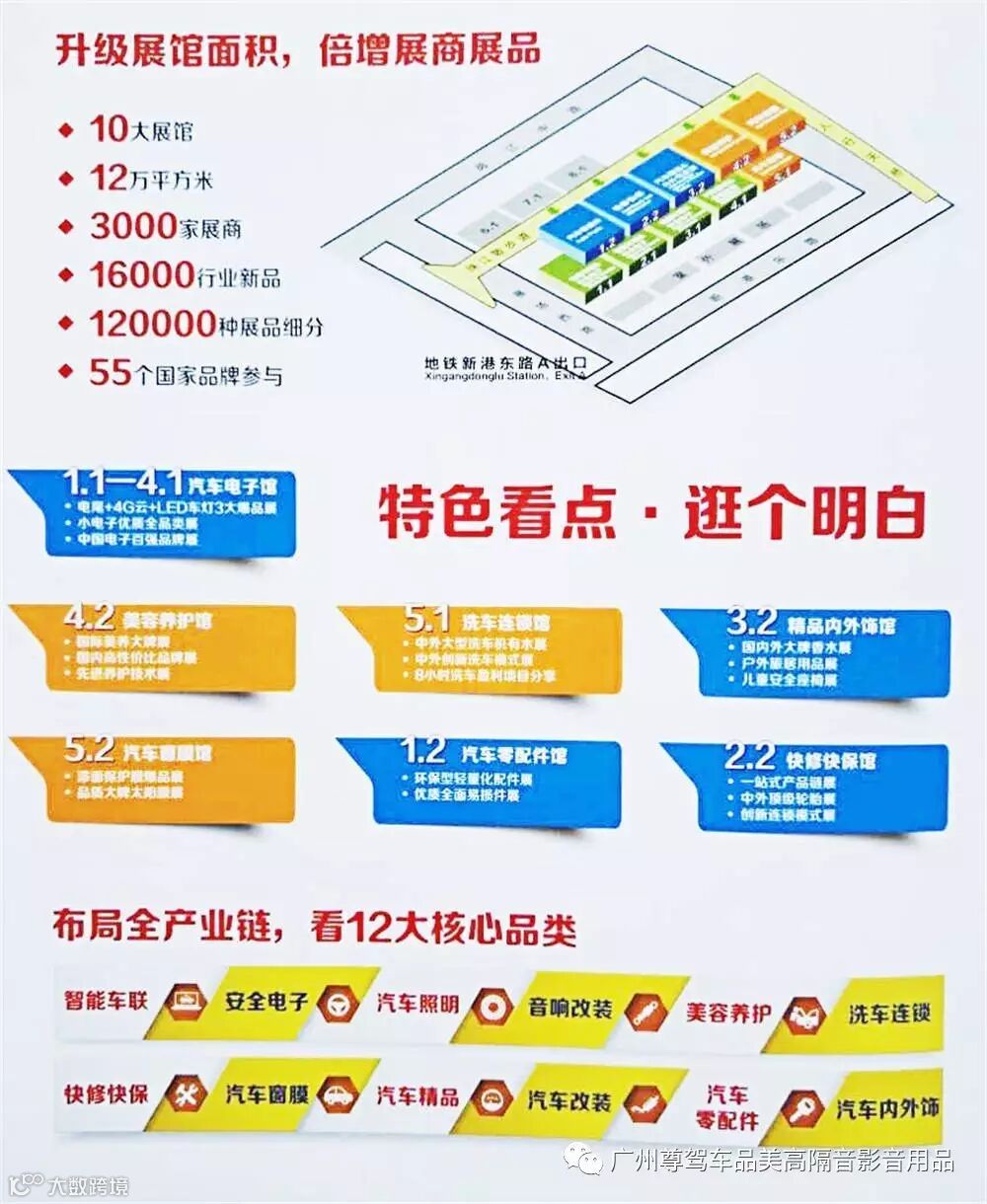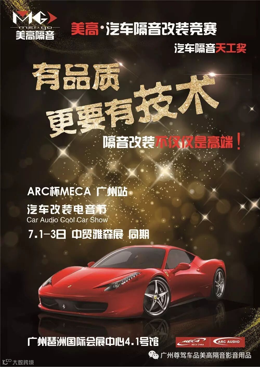 2017中贸雅森广州展将于7月1-3日在亚洲最大展馆中国进出口商品交易会展馆(简称:广交会琶洲馆)举行。12万平米展馆,聚集3000多家汽车后市场实力企业和展商。同期还举办ARC杯MECA广州站汽车音响挑战赛、汽车改装电音节,和美高•汽车隔音改装竞赛等精彩活动。在此之前广州尊驾美高隔音诚邀广东及周边地区的汽车音响改装店家和全国各地店家、车队参与这一盛典。