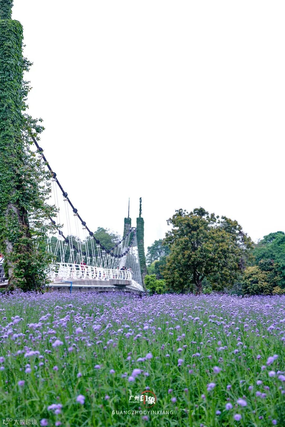 吊桥搭配紫色花海