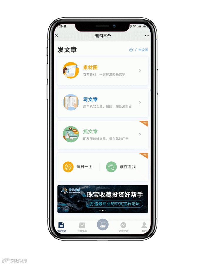 点开全员营销页面可以打造属于自己的个人IP,还可以进行员工管理以及数据报表哦!最后就是