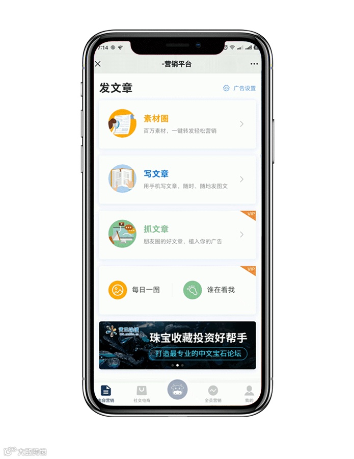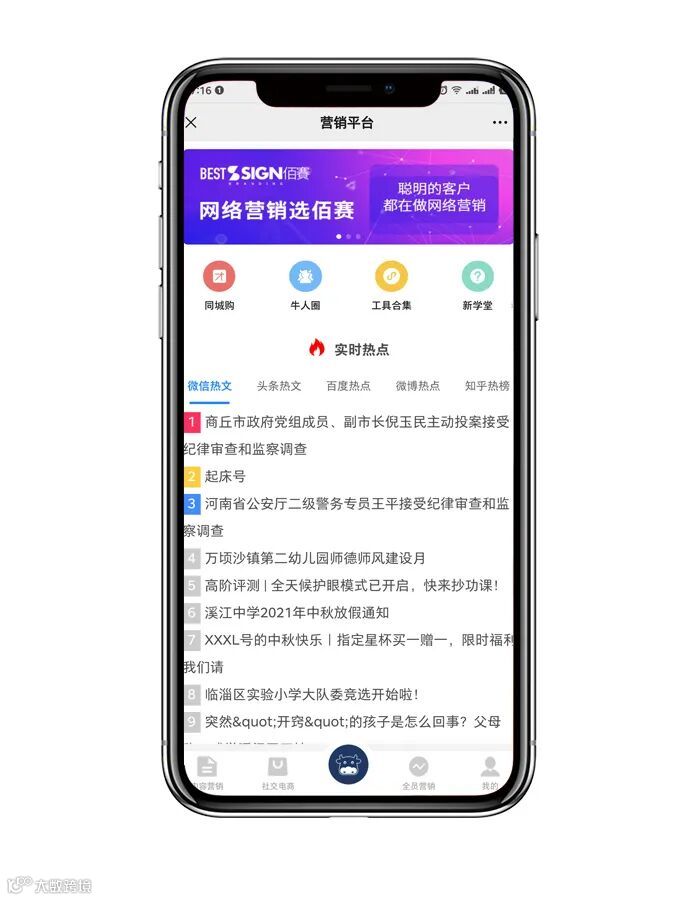下面就由牛牛就带你了解一下我们的新内容吧!首先点开营销平台就会弹出以下画面,我们可以进行线上同城购物,还能在牛人圈里面查找到各类行业的大佬,还可以查询到每日的时事热点哦!