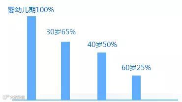 有图可见,同婴儿时期的肌肤相比,30岁时的含量是65%,40岁以上只有50%,皮肤老化过程中人体会大量减少玻尿酸,且皮肤弹力下降,产生细纹,一系列皮肤问题油然而生。