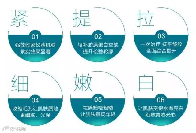 UIthera极限音波拉皮原理 采用最先进的高强度聚焦式超音波能量,通过三种不同的探头,可分别作用到表皮、真皮层及以往只有手术拉皮才能到达的筋膜层,产生近万个凝结点,令胶原蛋白产生立即的收缩,并刺激胶原大量新生和重组,构建全新的胶原蛋白纤维网,从而从皮肤底层给肌肤增强弹性,实现肌肤、除皱、塑性三大功效,是目前最新一代除皱抗衰美肤项目。
