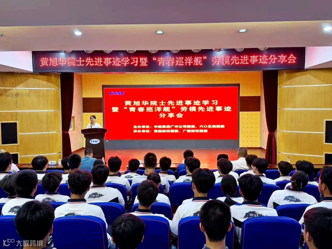 9月19日,中船集团广州公司、六〇五院团委联合举办黄旭华院士先进事迹学习暨“青春巡洋舰”劳模事迹分享会活动。活动邀请全国劳动模范、广船国际有限公司电焊工、特级技师、高级工程师冯文虎分享成长经历。来自广州公司、六〇五院各直属团组织负责人、团员青年代表,广州公司旗下两所技工学校青年学生共同聆听院士事迹、感悟劳模初心、交流成长体会,凝聚船舶报国的青春共识。