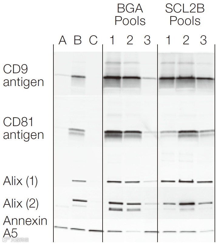 对于这样的EV蛋白Marker检测难点,很多研究者不得不使用跑多块胶、转多块膜,或抗体重杂交的方式完成实验,但这样的操作不但复杂耗时,而且特别会导致结果的不准确。那么有更方便的方法来解决EV Western检测的困境吗?