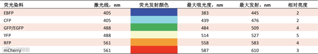 CFP,青色荧光蛋白;EBFP,增强的蓝色荧光蛋白;EGFP,增强的绿色荧光蛋白;GFP,绿色荧光蛋白;RFP,红色荧光蛋白;YFP,黄色荧光