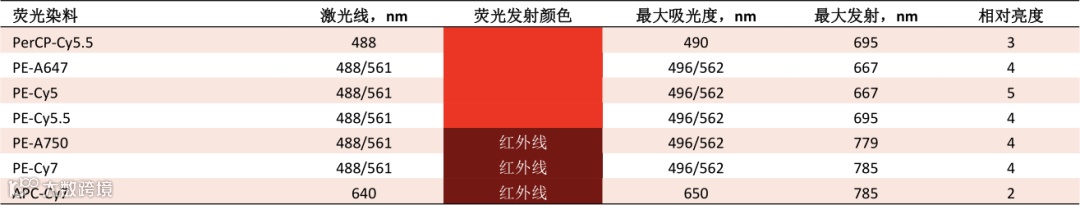 Axxx,Alexa Fluor;APC,别藻蓝蛋白;Cy,花青;PE,藻红蛋白;PerCP,多甲藻素叶绿素蛋白。
