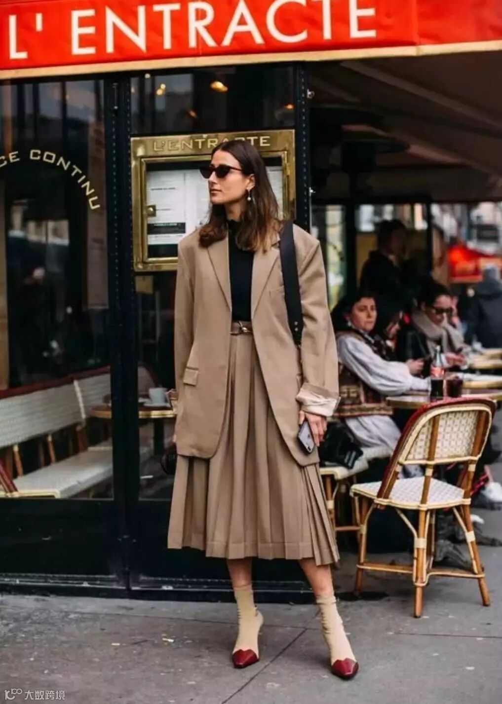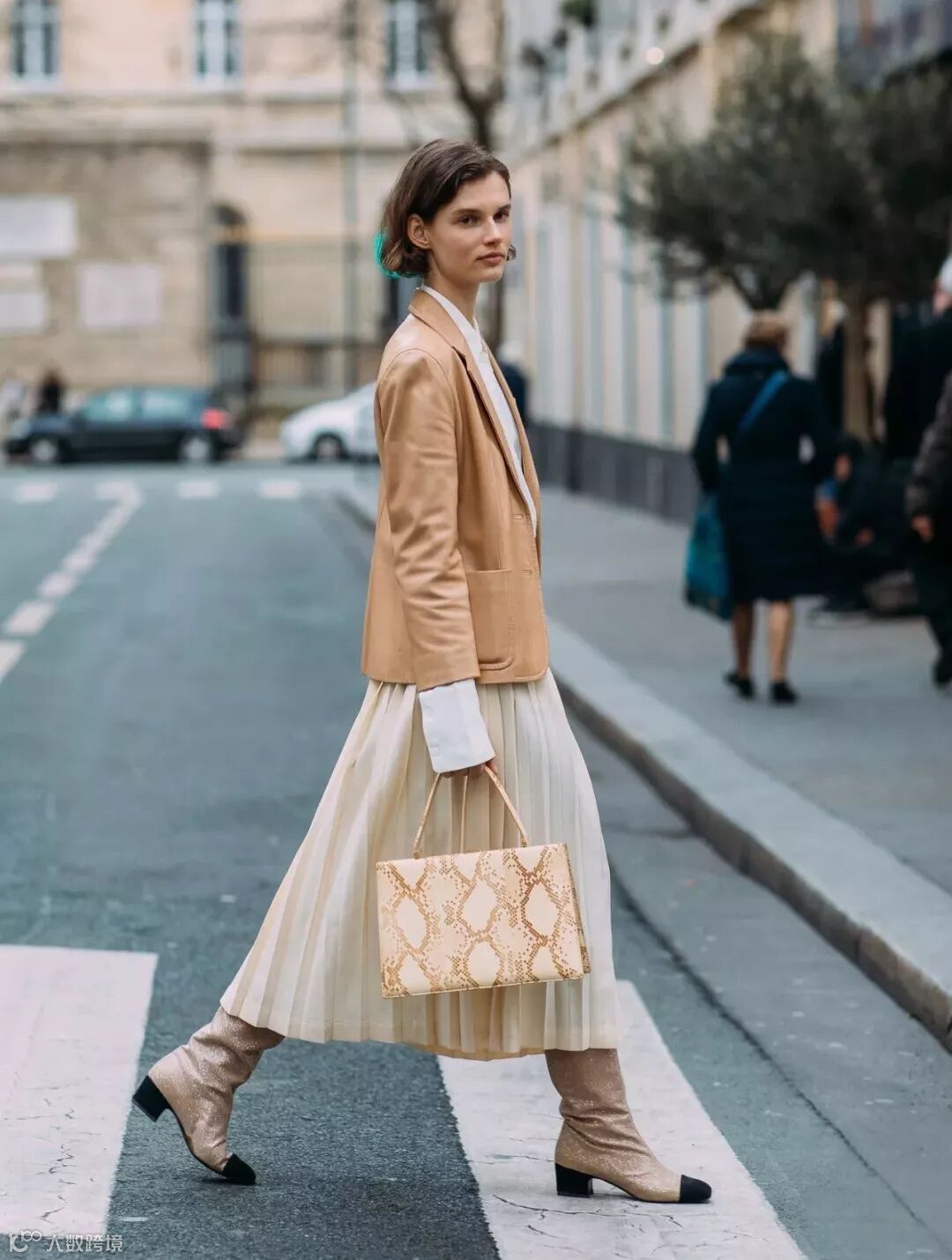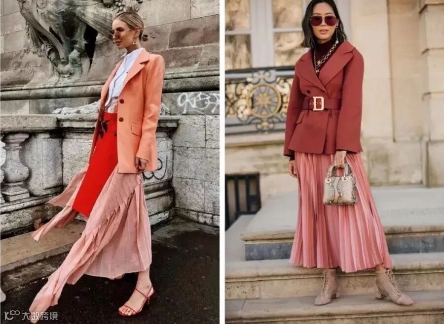 西装外套看起来有点正式,但带有飘逸感的百褶裙刚好可以中和它,非常适合各位精致的都市丽人。