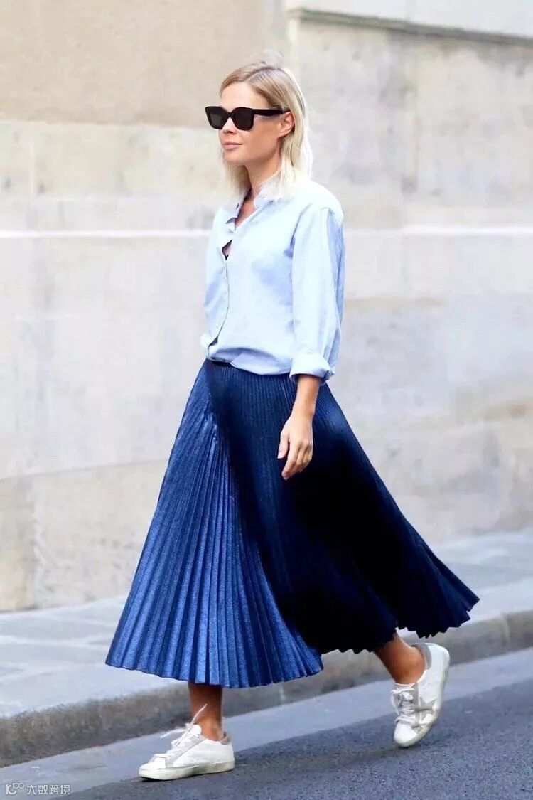 首先,百褶裙的的长度和材质都十分影响最终的穿搭呈现效果,大家就要从身材上判断出自己的身型。