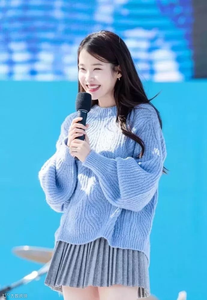 倒三角型的上半身比较丰满 ,穿上百褶长裙容易产生整体膨胀的感觉,建议选择短款。(悄咪咪说一句:IU真好看~)