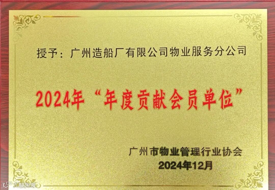 近日,中国船舶集团广州公司所属广船公司物业服务分公司被广州市物业管理行业协会授予2024年“年度贡献会员单位”荣誉称号。这一荣誉是市物业协会对广州市2024年度综合表现排名前100名的物业服务企业的嘉奖。