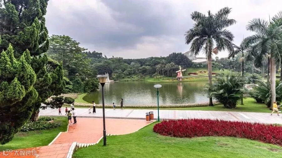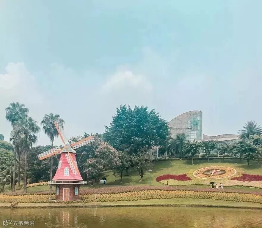 园内以亭台、云墙、曲廊等岭南园林为建筑风格