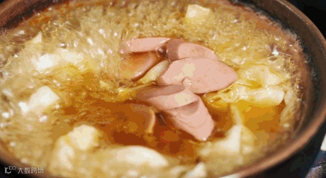 大火煮沸后在砂锅里分别加入猪肝、香菇、肉丸子、火腿肠、莲花白、鹌鹑蛋等配菜。