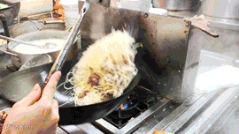 看着阿姨猛火翻炒