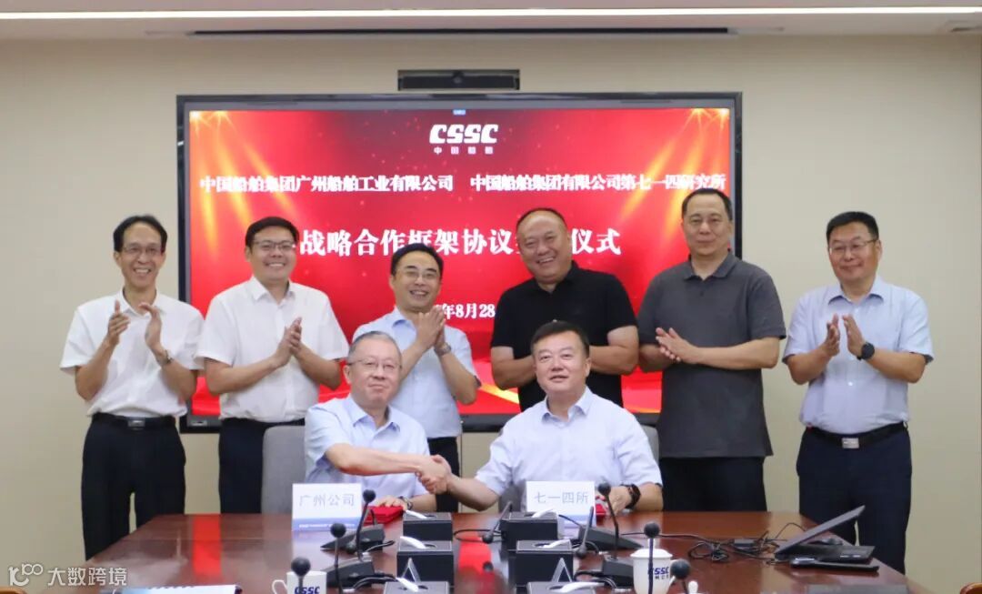 8月28日,中国船舶集团广州公司与中国船舶集团第七一四研究所在广州举行战略合作协议签约仪式。广州公司党委副书记、总经理王学军见证签约。广州公司副总经理周庆与第七一四所副所长肖泽代表双方签字。