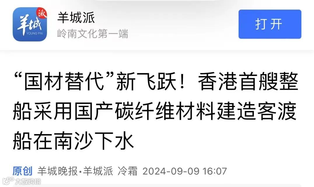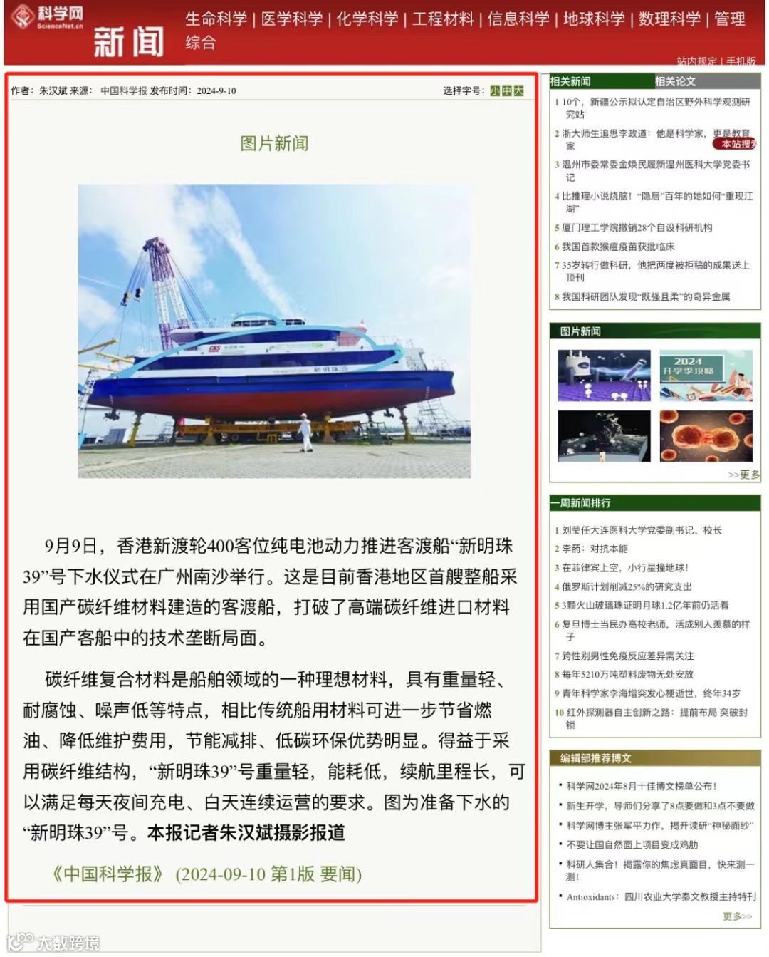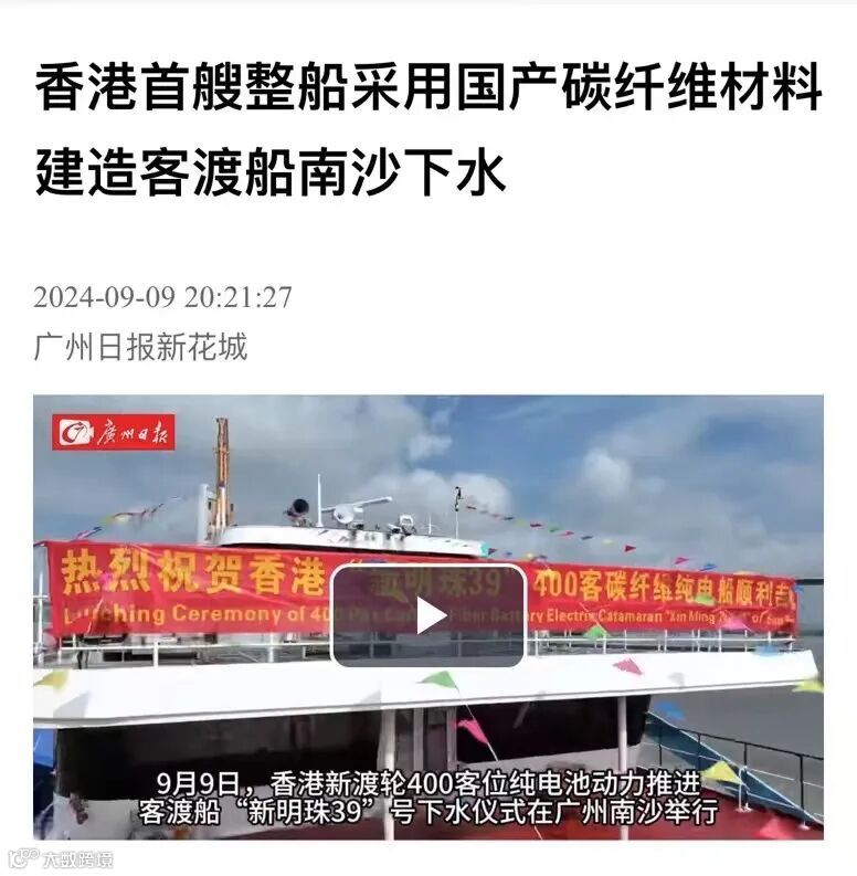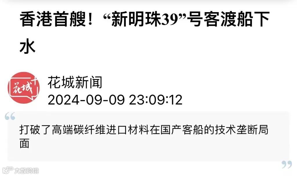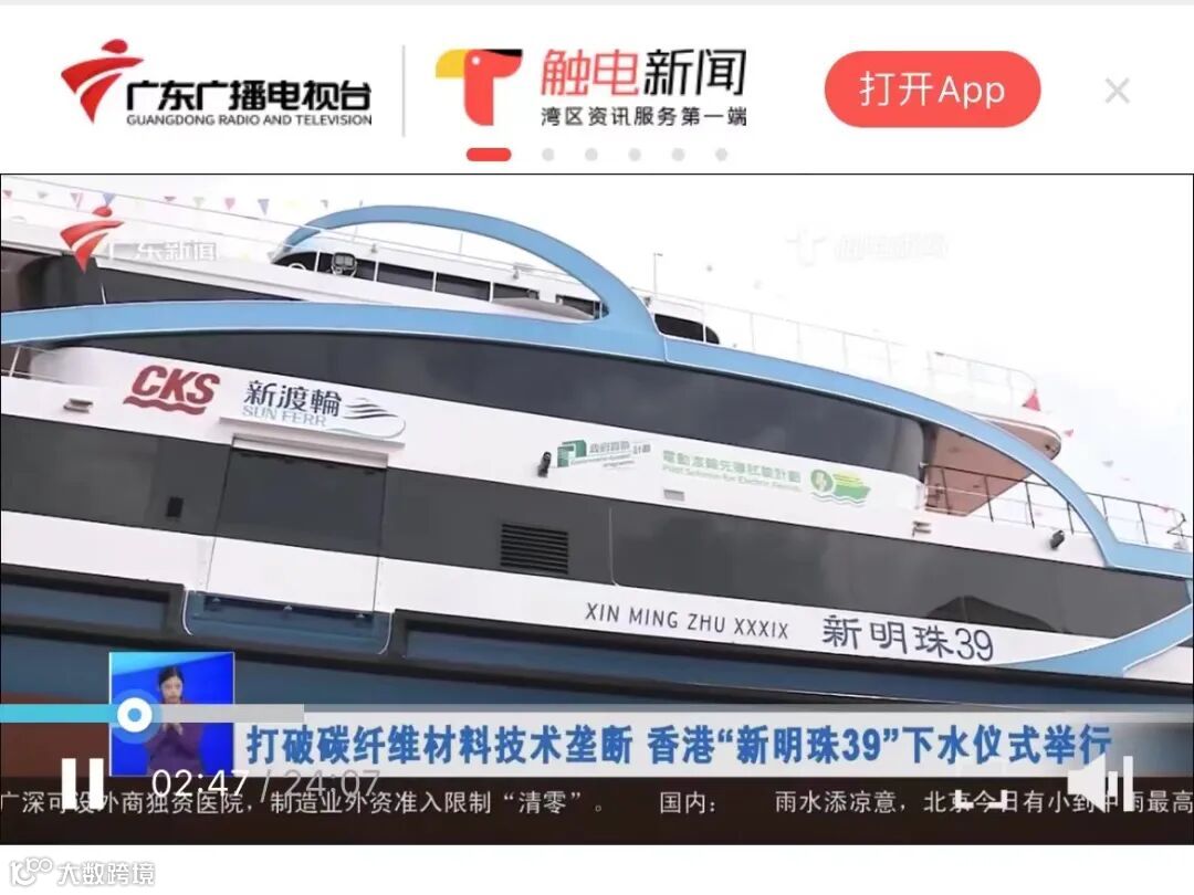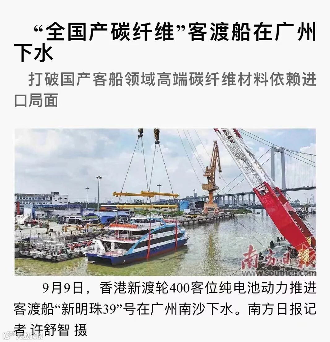 “新明珠39”因实现整船采用国产碳纤维建造的重大突破