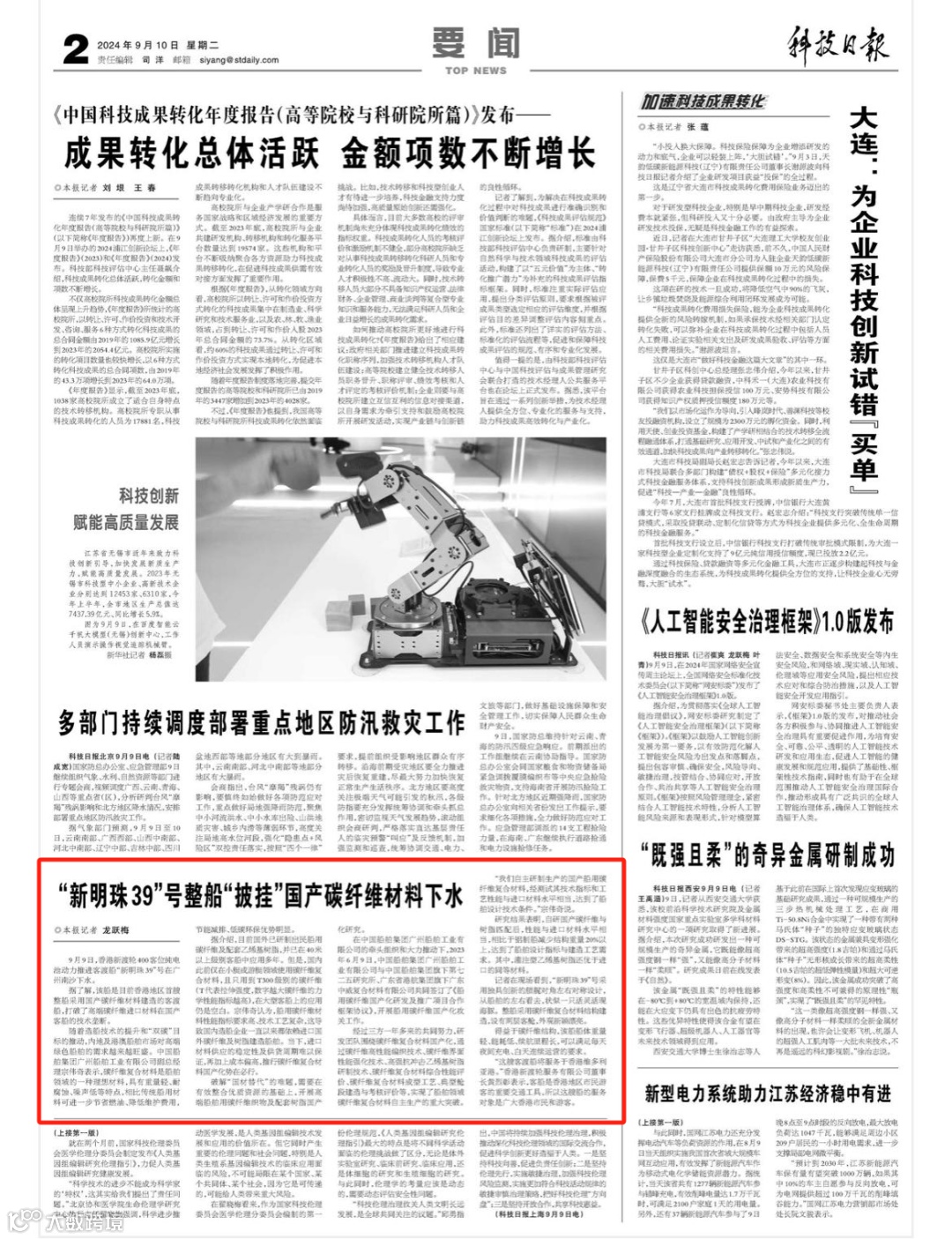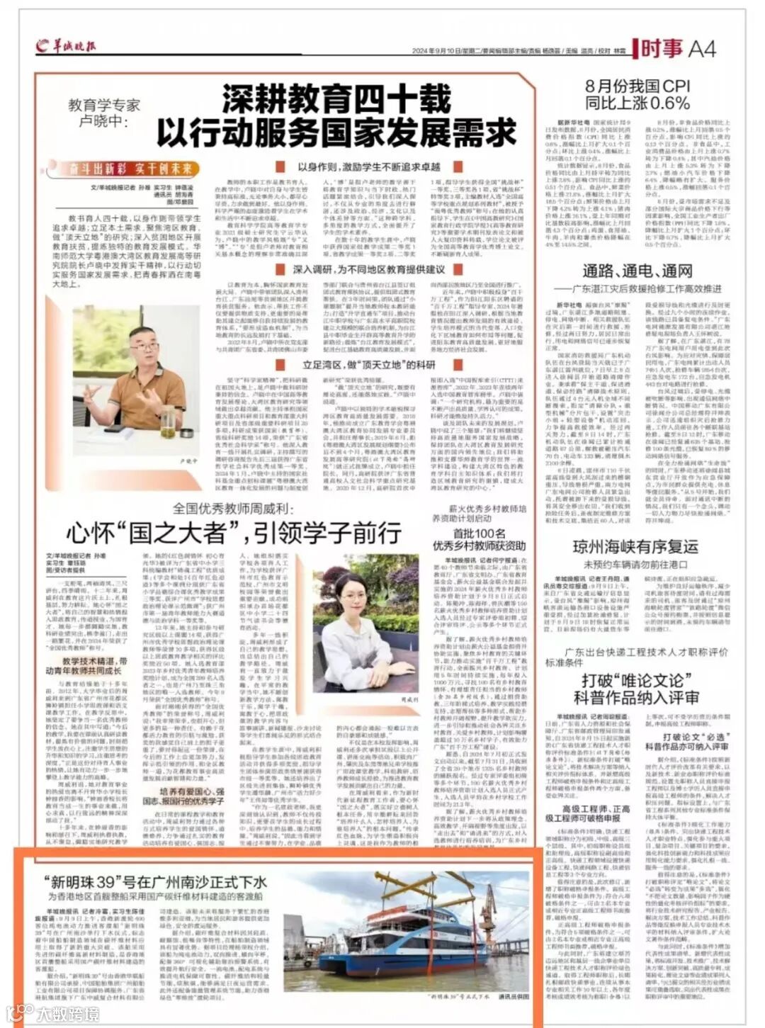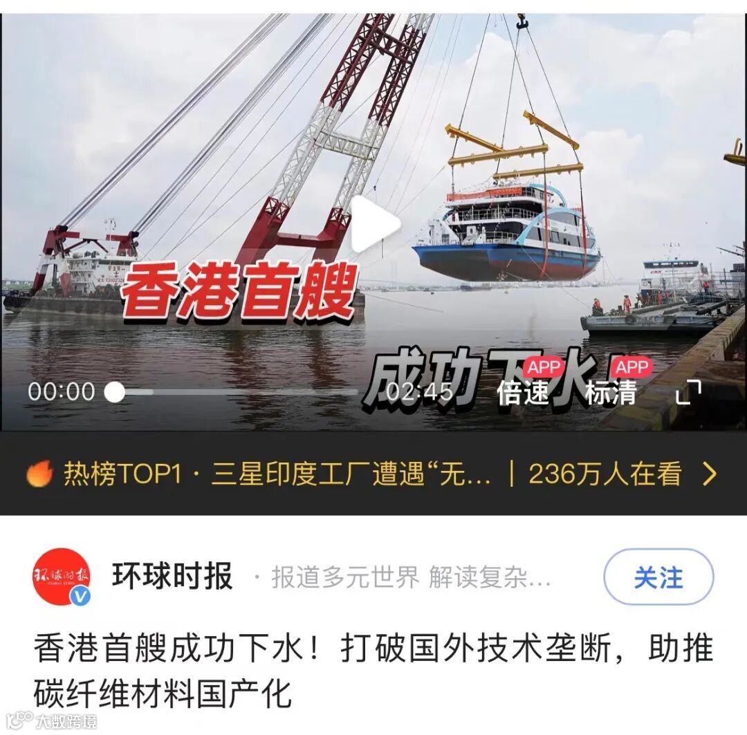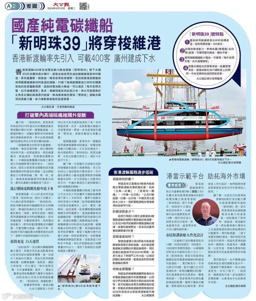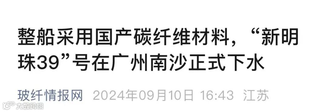 “新明珠39”因实现整船采用国产碳纤维建造的重大突破