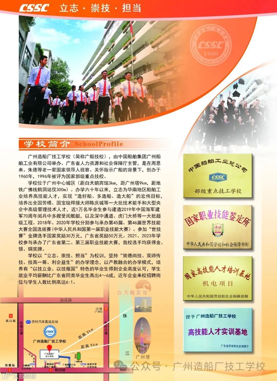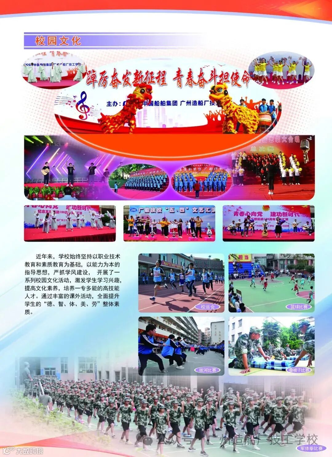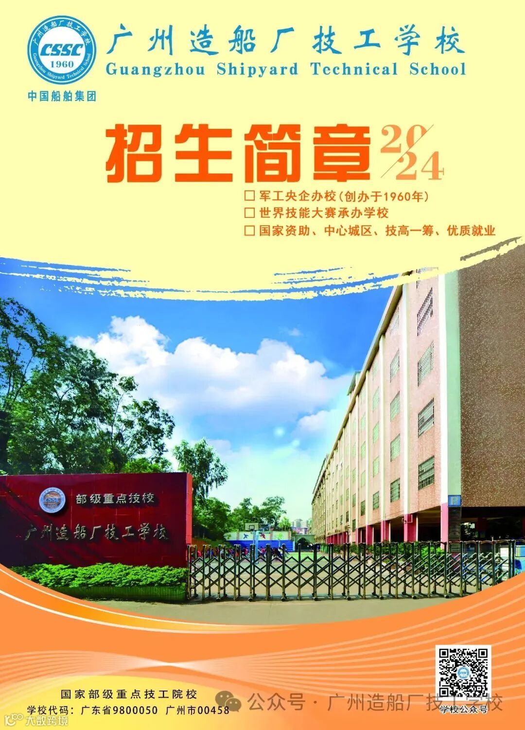 广州造船厂技工学校(简称广船技校)是一所公办技校,由中国船舶集团广州船舶工业有限公司举办、广东省人力资源和社会保障厅主管,是在周恩来、朱德等老一辈国家领导人视察、关怀指示广船的背景下,创办于1960年,1996年被评为国家部级重点技校。办学六十年以来,立志为华南地区船舶工业培养高技能人才,培养出全国劳模、国宝级焊接大师陈庆城等一大批技术能手和大型央企中高级管理技术人才。2018年、2020年学校分别参与承办第45届、第46届世界技能大赛全国选拔赛(中华人民共和国第一届职业技能大赛)。2021、2023年学校参与承办了广东省第二、第三届职业技能大赛,我校选手均获得金、银、铜奖牌。