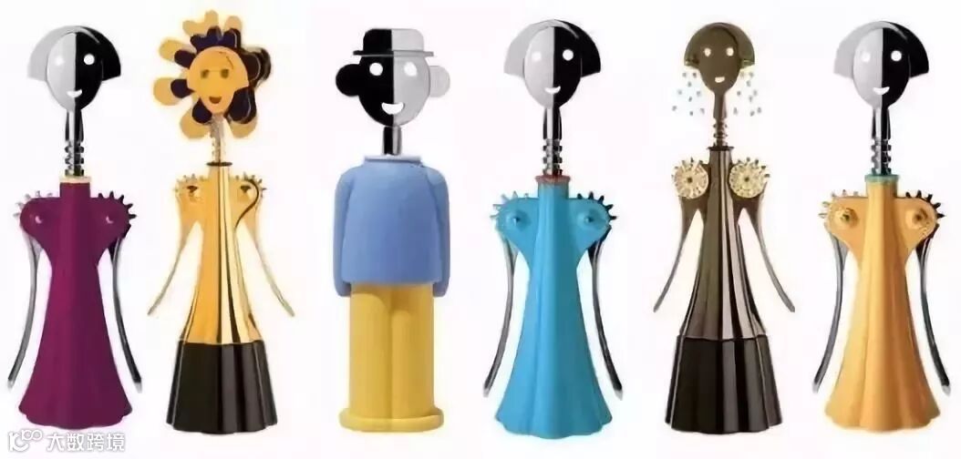 作品《Anna G》系列同样有着丰富的色彩,它是门迪尼与意大利家具品牌Alessi的合作款,灵感来源于门迪尼的好友Anna Gili。作品中Anna鲜明的衣着搭配和可爱的不锈钢“脸庞”极具辨识度,现今已成为Alessi品牌的精神象征。