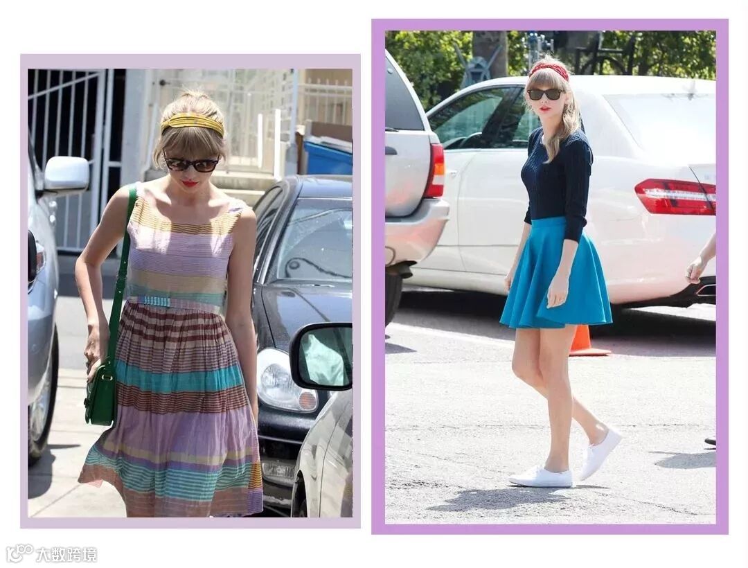 咋一看觉得发带还是偏日韩系,不过在欧美那边,发带一样是时尚宠儿。最有代表性是热爱各种发饰的霉霉,她就喜欢各种发带换着来,用实践告诉你“本姑娘大高个子一样能当小仙女”。