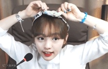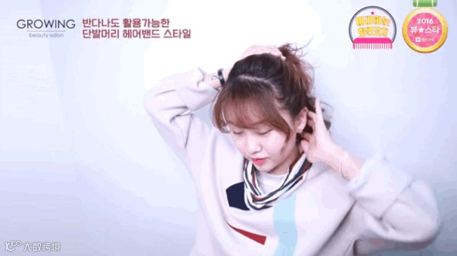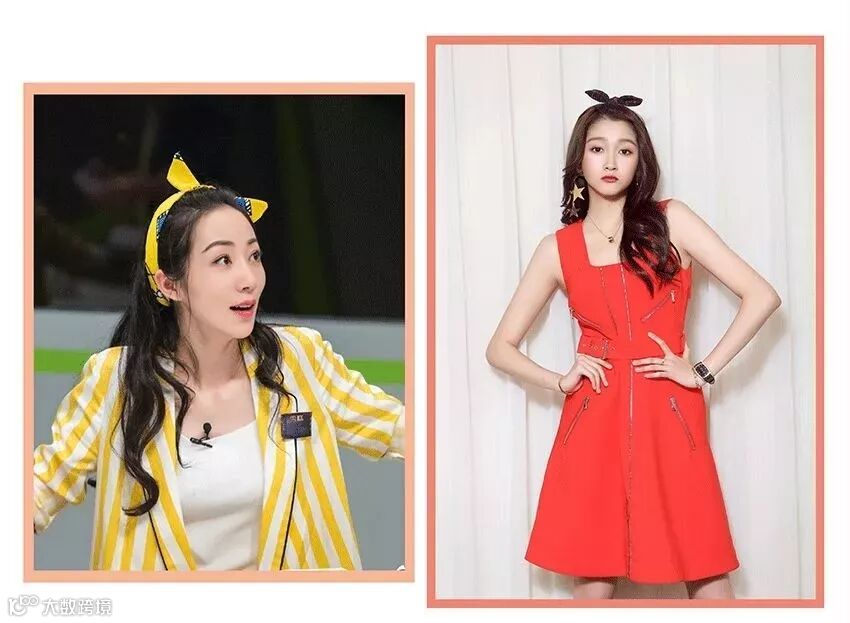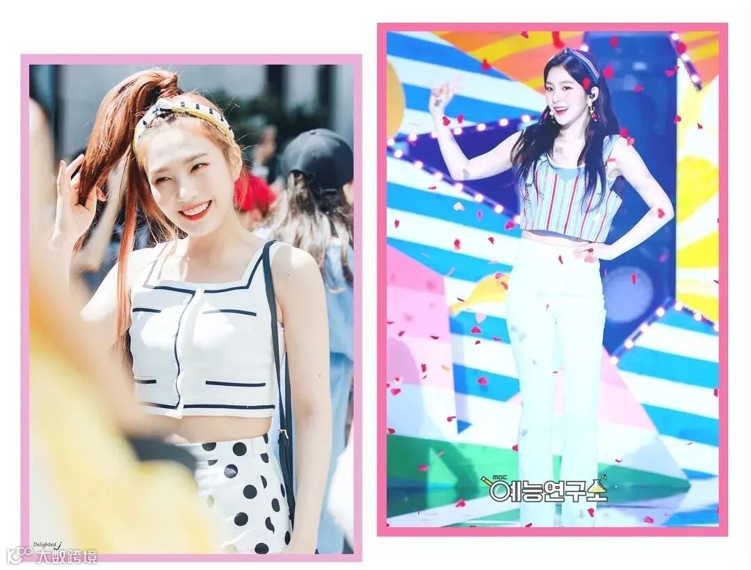 这种大方简约,但又很有少女感的发带造型,必须是甜豆们营业时首选。看得最多的是红贝贝的仙女们,Irene 和Joy 这种中等宽度的发带惹眼但是不夸张,只要发带中间有个小巧的结儿,就能成为撩人于不经意间的甜系小可爱,而且这种简单又不单调的款式也适合唱跳。