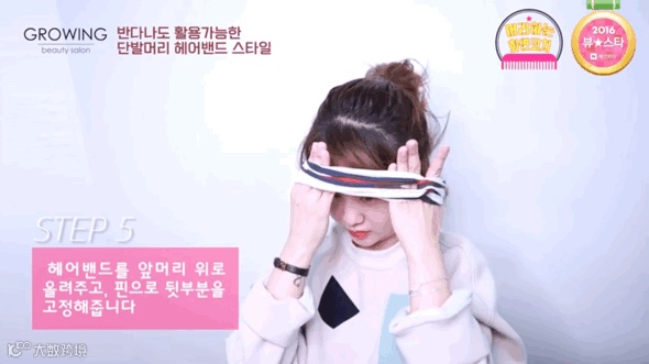 ② 接着就是把发带推上去,这个很容易,也可以看心情调整小结的位置。记得撑大发带不要弄乱头发就好。