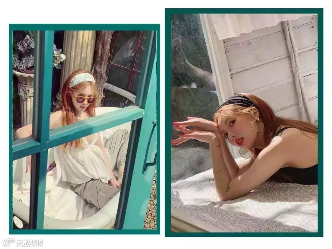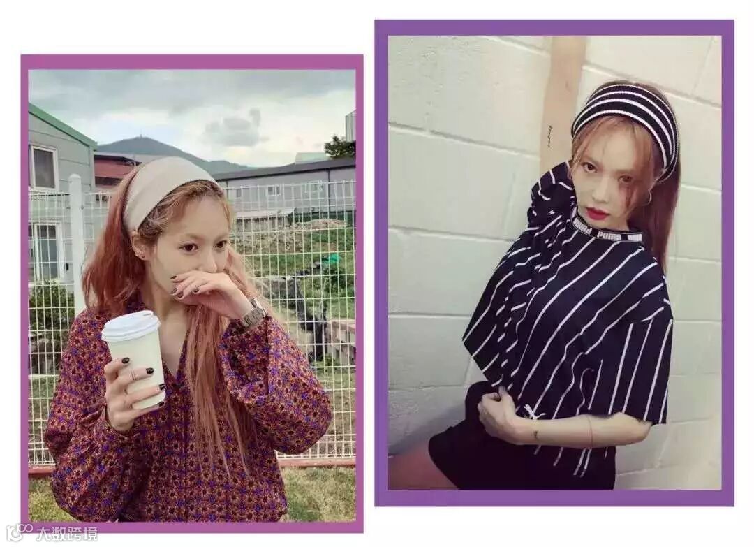 还有一种,就是像前面说的泫雅那样,用被素简的少女系小元素点缀的宽版发带,加以清新或甜系的同色系穿搭,画面也是甜美又大方和谐。