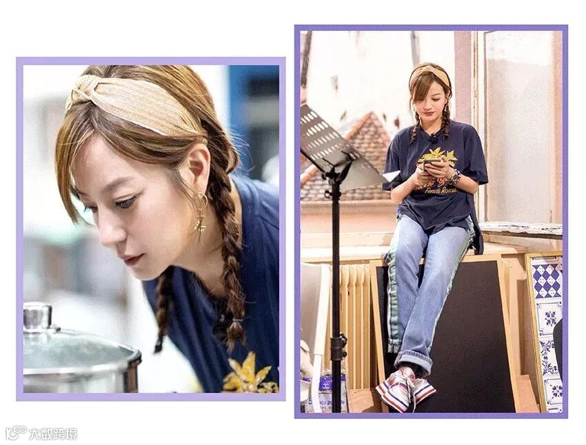 之前看赵薇参加综艺《中餐厅》,每一集看似随性又甜美造型,真的超级少女,还以为是20年前的小燕子从《还珠格格》穿越到《中餐厅》的厨房里。薇老板在节目里发带造型出镜率超高,也总是让人眼前一亮。低扎的斜编发+深蓝色发带,不用高调的点缀就很可爱迷人了。