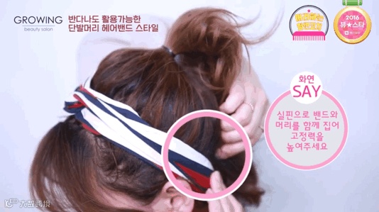 对了,短发的小姐妹,还可以用一根细些的发带点缀。先把发带放上去后,再把头发吹得相对自然蓬松些,看起来很酷很有活力,而且也很自然日常。