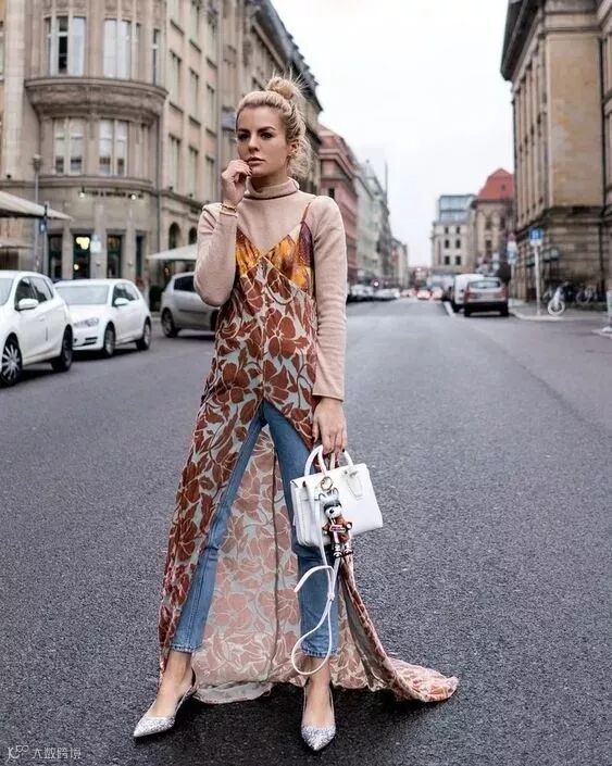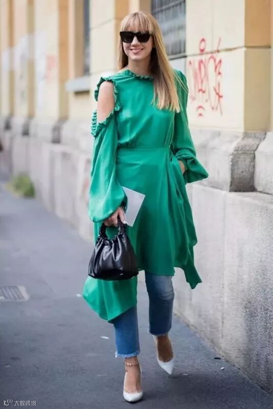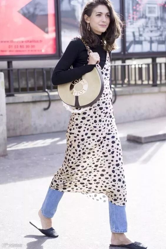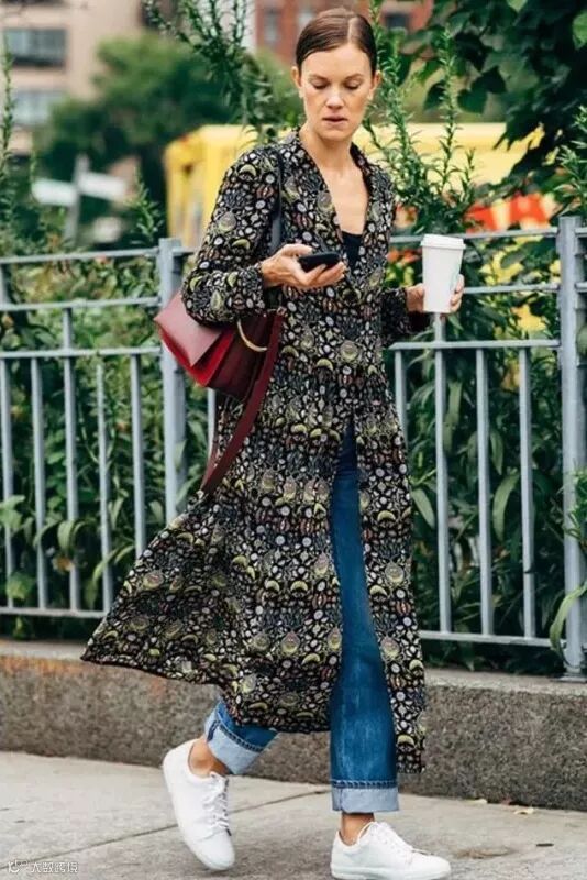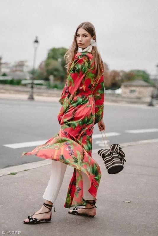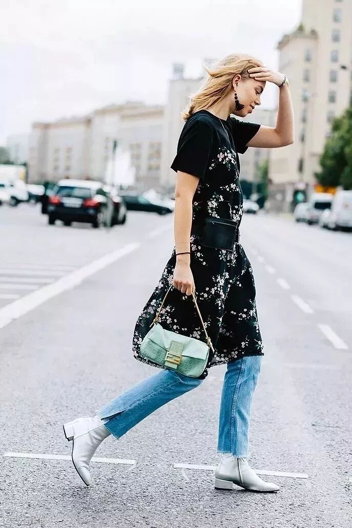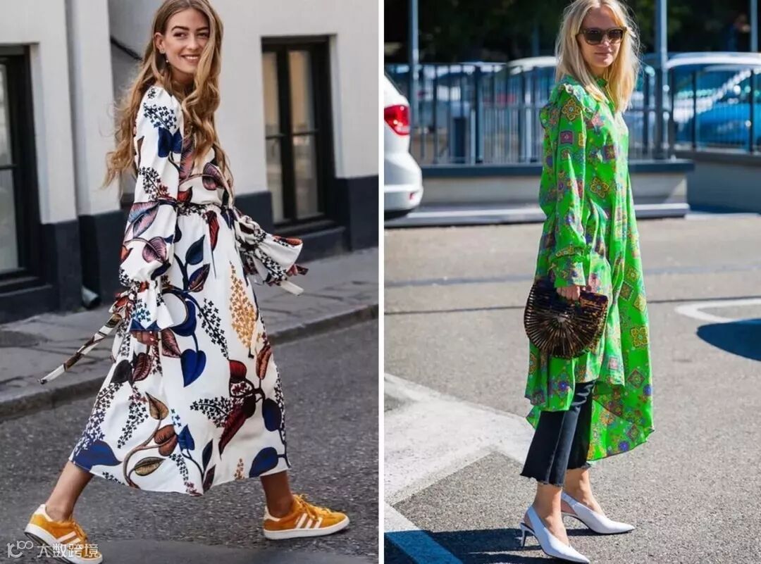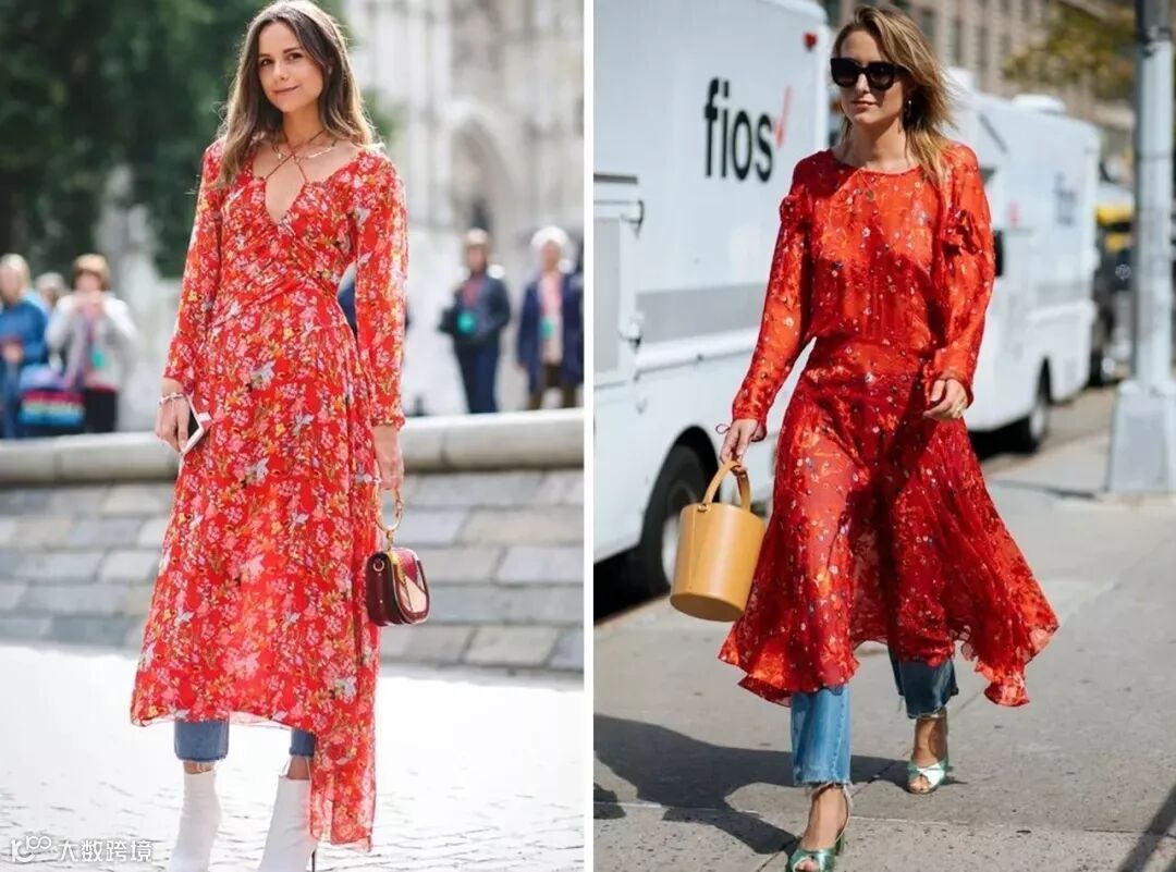 春夏更应来一条颜色鲜艳点的印花连衣裙,搭配一条浅色牛仔裤,充满热情的同时绽放个性光彩。