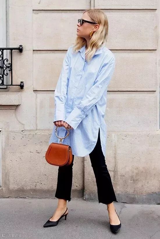 穿条纹衬衫的女人有一种魅力,既利落大方,随性优雅,搭配裤子更添帅气感。