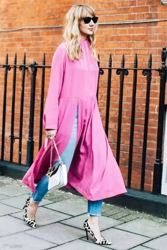 小个子宝宝建议选择开衩设计的裙子搭配裤装,这种走路带风的设计可以给你增强气势哦。