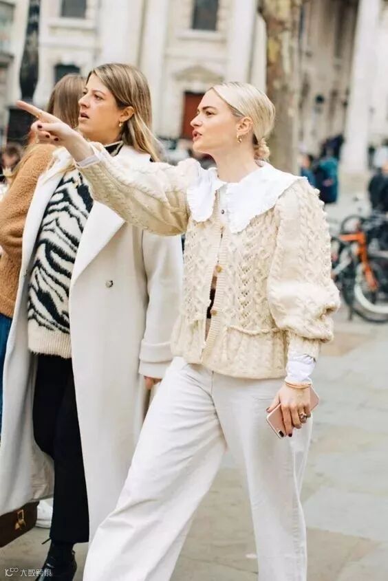 不仅时尚博主,明星对这款领型也是情有独钟,孔孝真欧尼也PICK过娃娃领的毛衣~