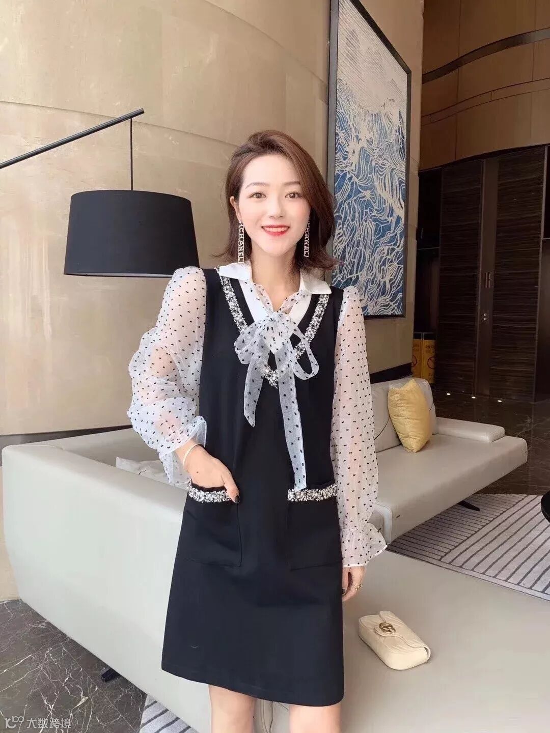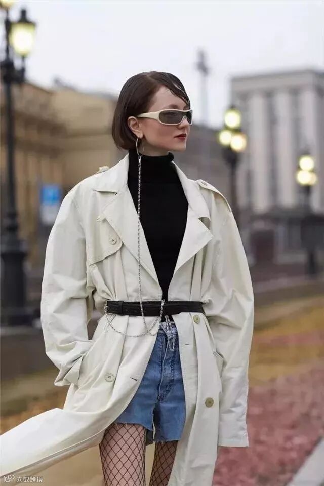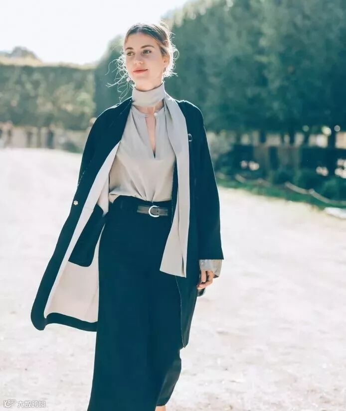 荷叶边小高领+系带的设计自带温柔优雅的感觉,而且非常百搭,无论是西装、大衣还是毛衣外套都OK 。