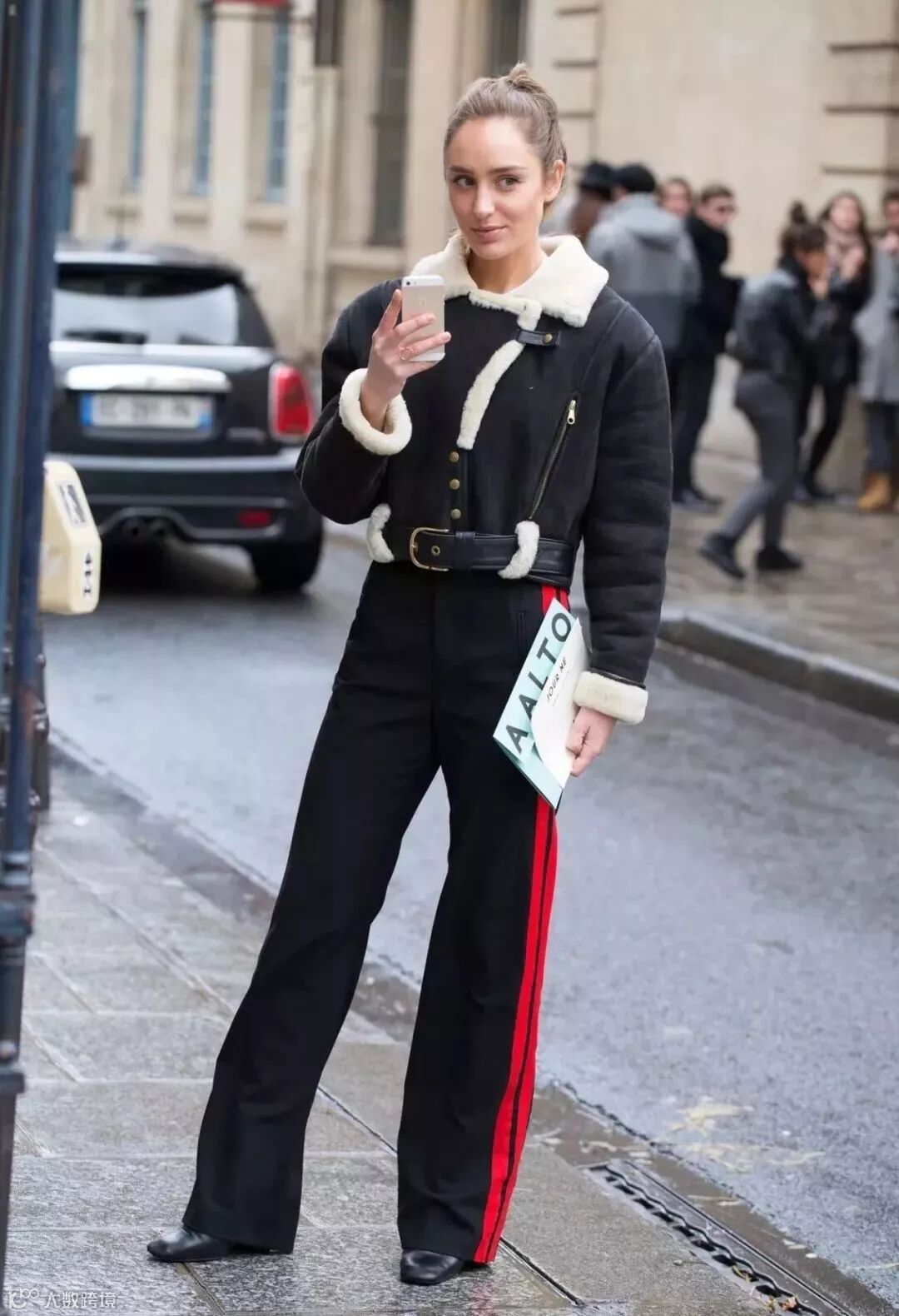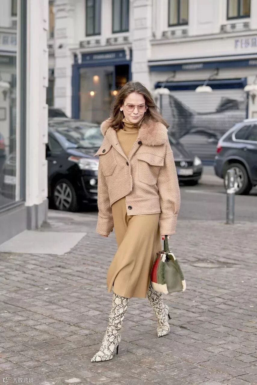 短上衣+毛领的设计,俏皮可爱中还能增添一丝温柔感。