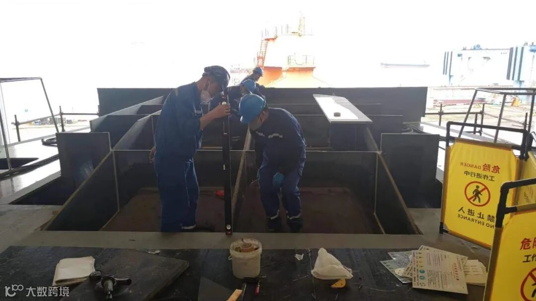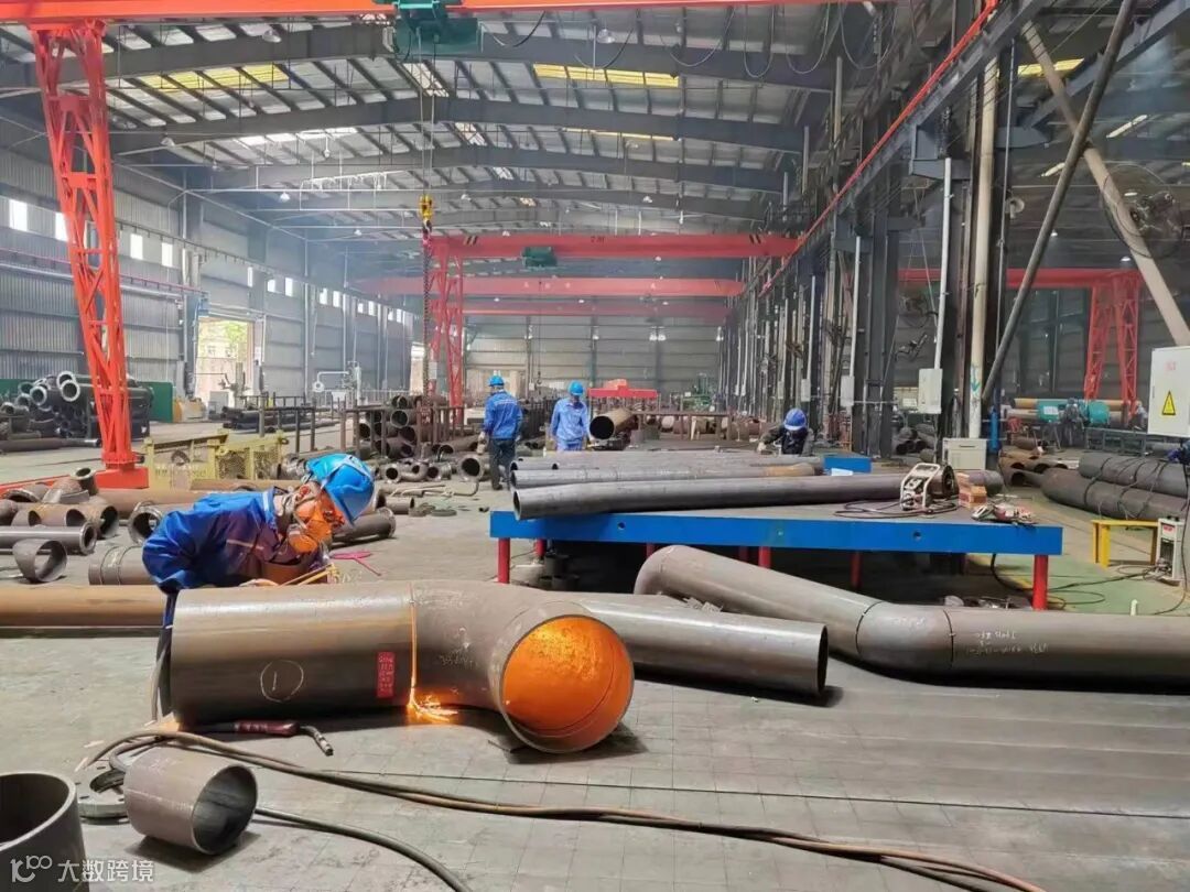 ▲船海事业部坚守施工一线,挥洒汗水开展管子加工、分段预制施工等工作。