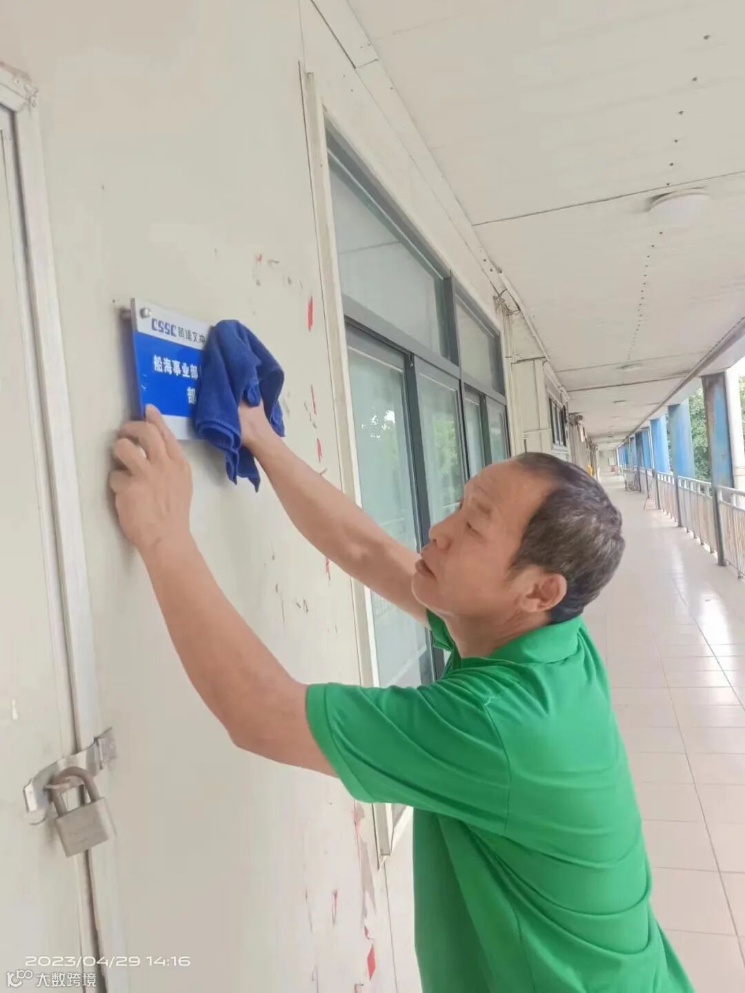 ▲职教事业部利用五一假期清洗厨具、更换教学楼排水管。