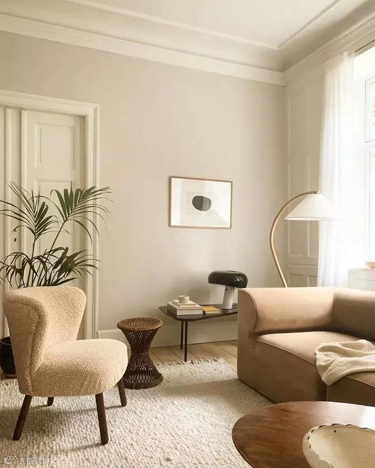 除了让人觉得温馨的米黄色、暖灰色、米白色、白色,以及原木色以外,空间里适当的重色也能保证色调的平衡,比如较深的木料,或绿植的墨绿色。