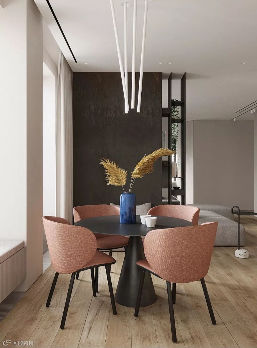 墙面闪烁出幻彩般的珠光效果、或是具有绒毛般细腻的天鹅绒、金属光泽等,再加上色彩的碰撞,这都是家有温度的一种体现。