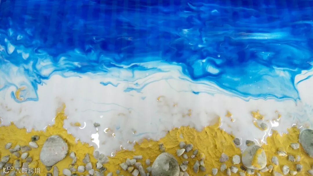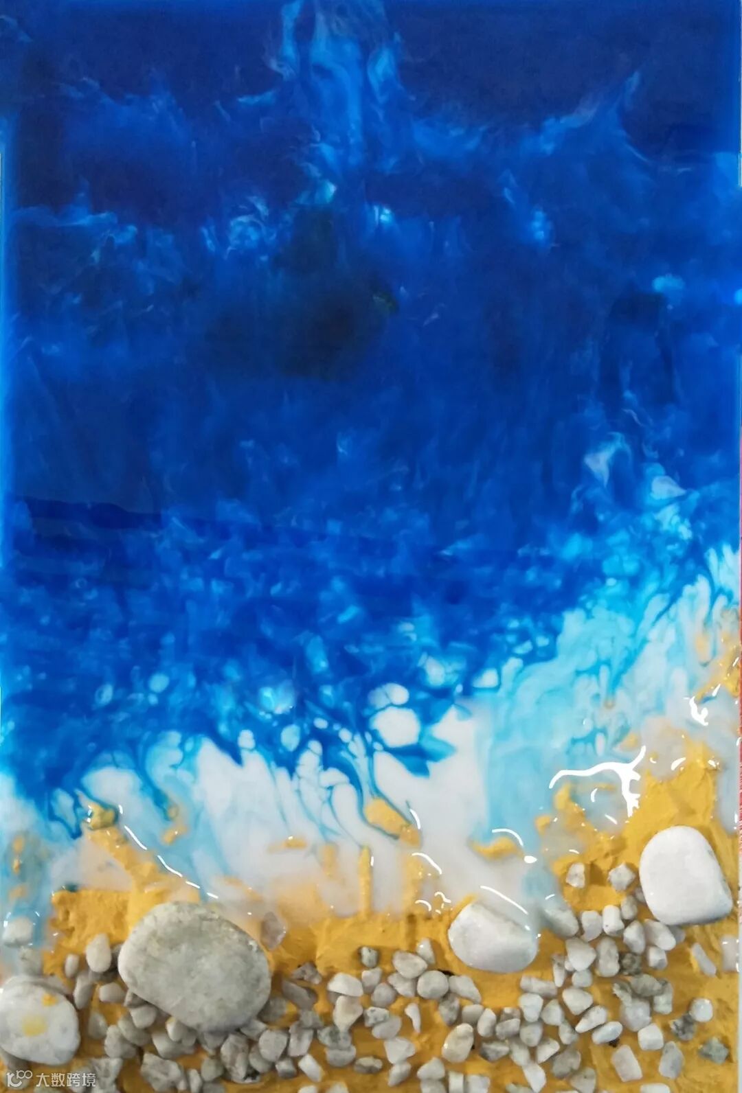 ◆ 再把海水加深一点,白、天蓝、深蓝、藏蓝的融合,色彩搭配也要一分一毫地慢慢把控。