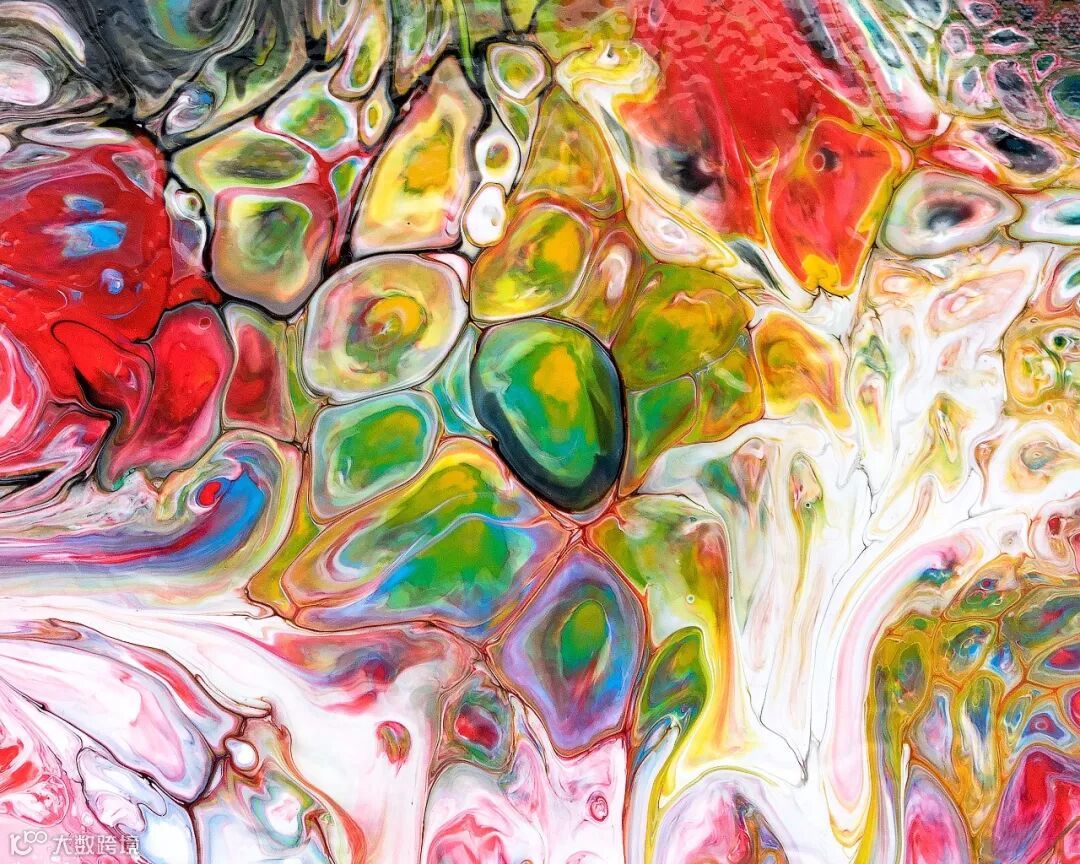 流彩画是将稀释过的颜料倒在无框布面上,在水、油、碱性等化学反应的的综合条件下,进而通过手或刷子等工具的移动产生痕迹所形成的。