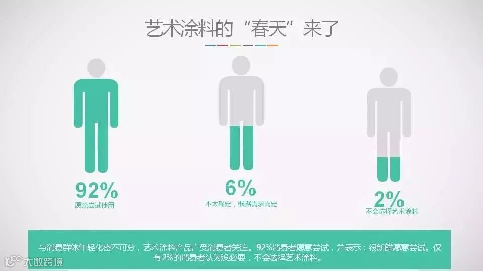 另外,艺术涂料的消费与消费群体年轻化密不可分,艺术涂料产品广受消费者关注。92%消费者愿意尝试,并表示:很新鲜愿意尝试。仅有2%的消费者认为没必要,不会选择艺术涂料。