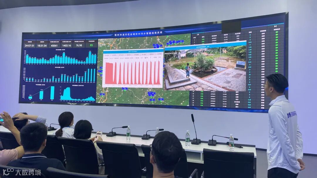 在展厅中,调研组对龙圩区全域环境治理形成了系统化的全面认知,同时还对污水治理多个站点的处理流量展开了详细的交流与分析。