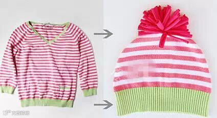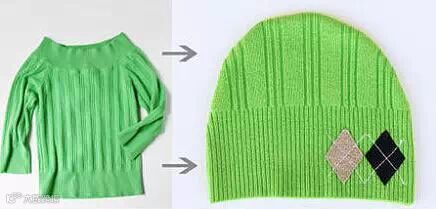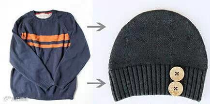 1、旧衣服变小帽子!正好冬天可以戴~